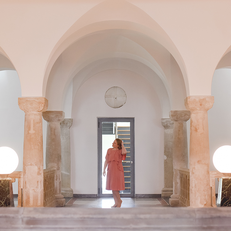 Ich stellte meine Kamera auf Serienbild und rannte los, Treppe runter und wieder rauf, schmiss mich in verschiedene Posen und geriet ins Schwitzen. Mal wieder. Zwei Frauen kamen die Treppe hoch und Lissy trieb sie wie ein Hütehund an den Rand des Geländers, damit sie nicht durchs Bild liefen. Fantastisch! Dieses Mal hatte ich gleich eine ganze Auswahl an Bildern im Gepäck und verstaute zufrieden meine Ausrüstung. Danach sammelte ich meine Schuhe aus dem Erdgeschoss auf. Ich konnte mit Stöckelschuhen einfach keine Treppen rennen, also hatte ich sie gleich beim ersten Bild neben der Treppe liegenlassen.